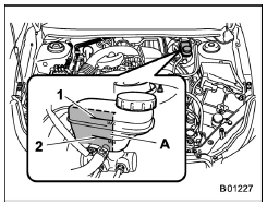 Check the fluid level on the outside of the reservoir. Because this reservoir is used for both the brake and clutch systems and has chambers for each system, be sure to check the fluid level for the clutch system at the inboard side of the reservoir (shaded area in the illustration). If the fluid level is below "MIN", add the recommended clutch fluid to "MAX".