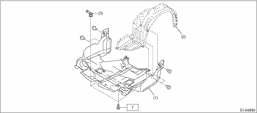 (1) | Under cover - front | (3) | Spacer - under cover | Tightening torque: N·m (kgf-m, ft-lb) | |