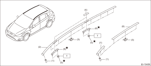 (4) | Cap - molding | (8) | Molding - roof rear (model with roof rail) | ||
