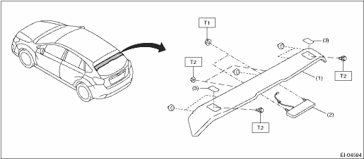 (1) | Roof spoiler | (3) | Cap | Tightening torque: N·m (kgf-m, ft-lb) | |