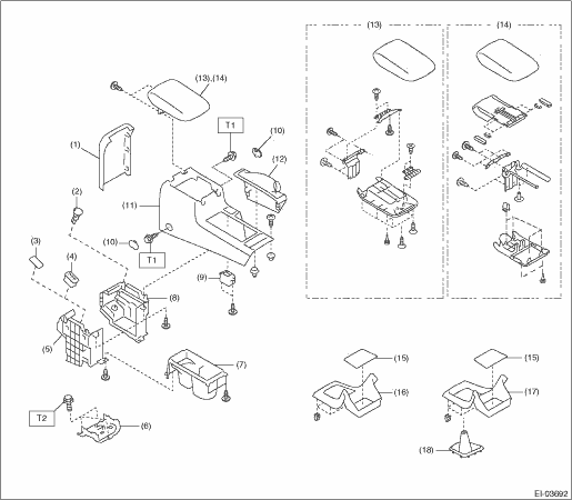 (8) | Pocket console box LH | (16) | Cover front (CVT model) | ||
