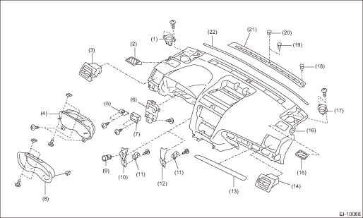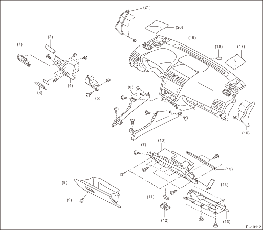 (6) | Panel center LWR LH | (13) | Under cover ASSY - passenger | (20) | Grille speaker side LH |