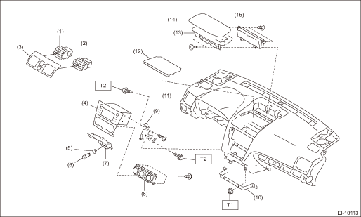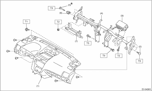 (1) | Panel COMPL - instrument | (5) | TORX® bolt (M8 ? 57) | Tightening torque: N·m (kgf-m, ft-lb) | |