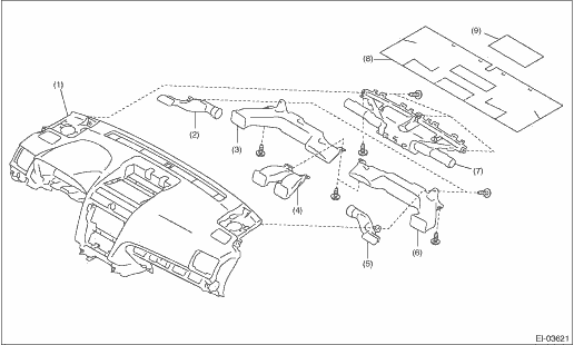(3) | Duct - side ventilation LH | (6) | Duct - side ventilation RH | (9) | Insulator - airbag |