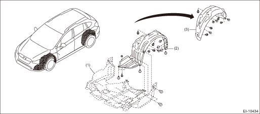 (1) | Under cover - front | (2) | Mud guard - front | (3) | Mud guard - rear |