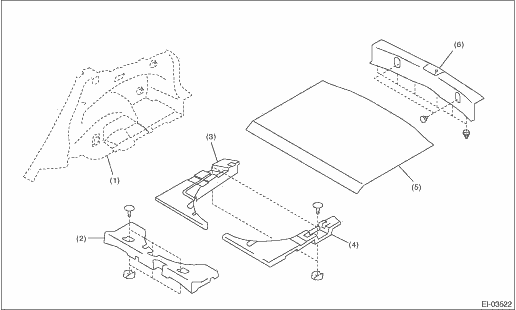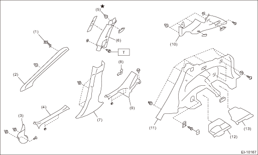(1) | Tether clip | (7) | Trim panel - center pillar LWR | (13) | Lid upper rear |