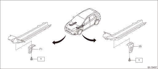 (3) | Cover side sill - front | (9) | Cover side sill - rear INN | Tightening torque: N·m (kgf-m, ft-lb) | |