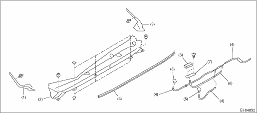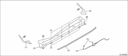(2) | Cowl panel ASSY | (4) | Hose - windshield washer | (6) | Cowl panel - side LH |