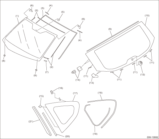 (3) | Molding - front window | (10) | Glass - rear gate | (17) | Glass - rear quarter |