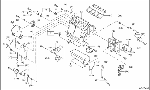 (9) | Lever - mode | (21) | Hose - drain | (33) | Motor - actuator mix LH (dual A/C model) |