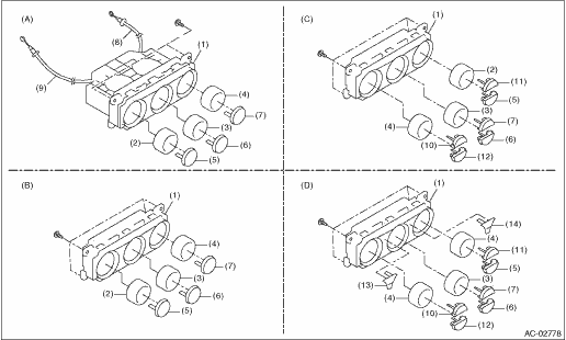 (A) | Manual A/C model | (C) | Single auto A/C model (with high grade MFD) | (D) | Dual auto A/C model |