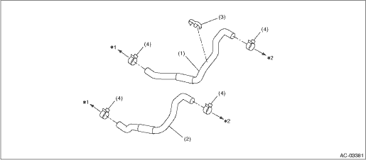 (1) | Hose - heater outlet | (3) | Clip | (4) | Clamp |