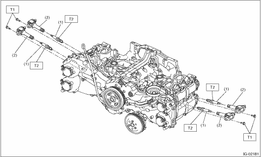 (1) | Spark plug | (2) | Ignition coil | Tightening torque: N·m (kgf-m, ft-lb) | |