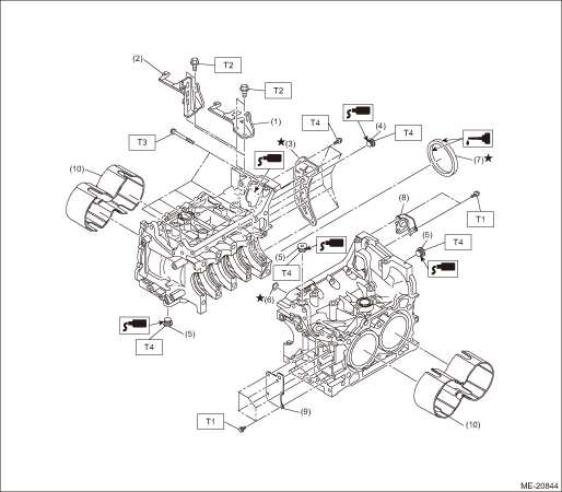 (4) | Cylinder block plug | (9) | Cylinder block plate | T3: | 25 (2.5, 18.4) |