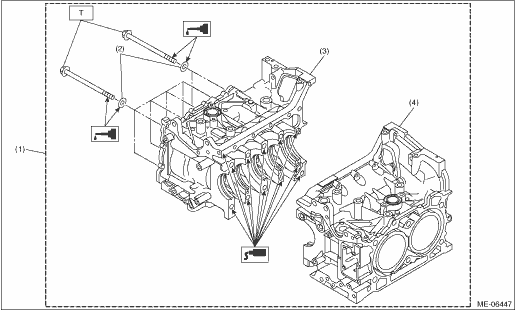 (2) | Washer | (4) | Cylinder block LH | T: | Cylinder Block > INSTALLATION"> |
