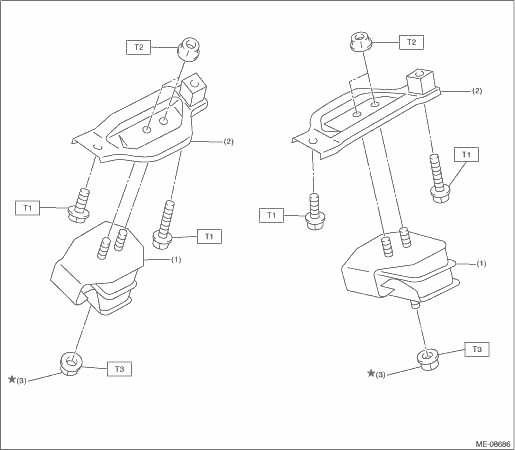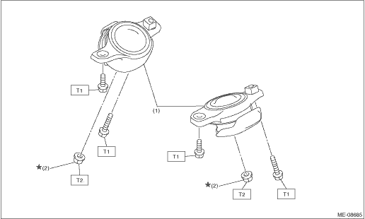 (2) | Front engine mounting bracket | T1: | 35 (3.6, 25.8) | ||