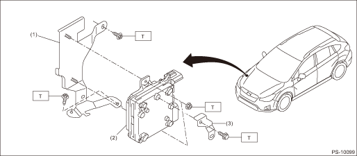 (1) | Bracket - control module | (3) | Harness bracket | Tightening torque: N·m (kgf-m, ft-lb) | |