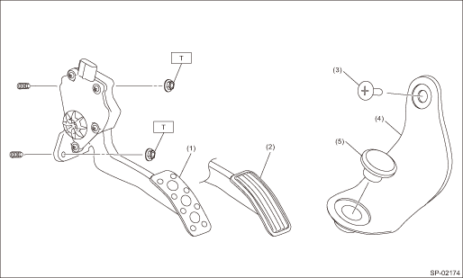 (2) | Accelerator pedal ASSY (normal type) | (5) | Accelerator stopper | T: | 7.5 (0.8, 5.5) |