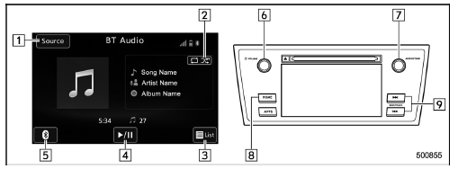 Depending on the Bluetooth device that is connected to the system, the music may start playing when selecting the key while it is paused. Conversely, the music may pause when selecting the key while it is playing.