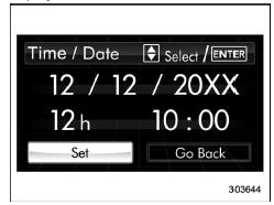 When "12 h" is selected, the clock will be set to a 12-hour display. When "24 h" is selected, the clock will be set to a 24-hour display.