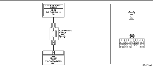 4.CHECK HARNESS BETWEEN KEY WARNING SWITCH AND BODY INTEGRATED UNIT (OPEN).