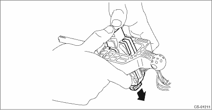 6. Remove the terminal of the solenoid unit using a flat tip precision screwdriver with a tip width of 1.3 mm (0.05 in) or less, KTC connector terminal tool ECC-1T or equivalent.