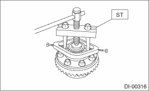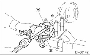 6. Remove the side retainer attachment bolts, set the ST to differential case, and extract the side retainers RH and LH with a puller.