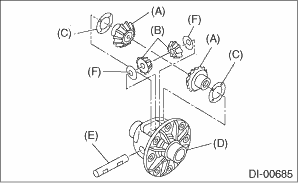 13. Draw out the pinion mate shaft, and remove pinion mate gears, pinion mate gear washers, side gears, and side gear thrust washers.