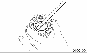 22. When replacing the bearings, tap out the front bearing race and rear bearing race in this order using a brass bar to remove them.