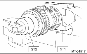 3. Remove the 5th hub & sleeve No. 2, baulk lever, 5th baulk ring, and 5th drive gear & needle bearing.