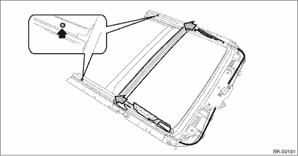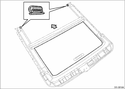 2. Remove the stopper rubber and pull out the sunshade assembly from the rail assembly - sunroof.