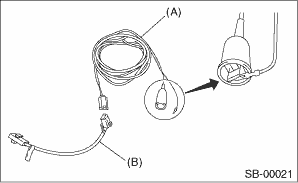 6. Connect the airbag deployment tool (A) and test harness adapter D (B).