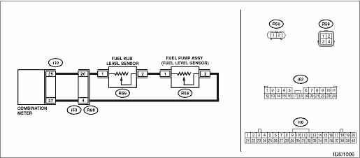 Check the fuel sub level sensor as a single part. Fuel Sub Level Sensor > INSPECTION">