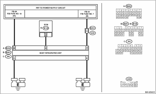 2) Measure the resistance between the body integrated unit connector and ECM connector.