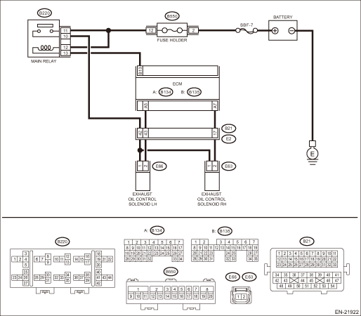 • Open circuit in harness between ECM connector and exhaust oil control solenoid LH connector