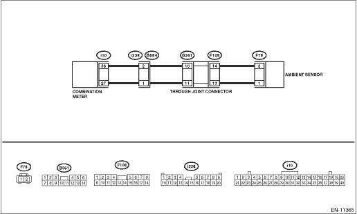 Ambient temperature sensor is connected to combination meter. ECM receives the data of ambient temperature sensor via CAN communication with combination meter.