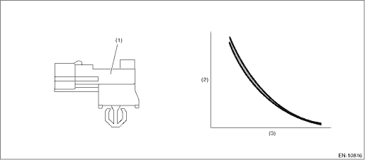 (1) | Ambient sensor | (2) | Resistance value (k?) | (3) | Ambient air temperature (°C (°F)) |