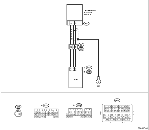 • Open circuit in harness between ECM connector and crankshaft position sensor connector