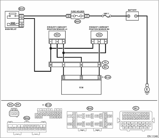 • Open circuit in harness between ECM connector and camshaft position sensor connector
