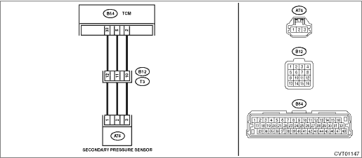 4) Measure the voltage between secondary pressure sensor connector terminals.