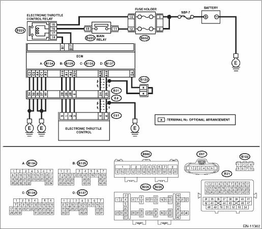 • Open circuit in harness between ECM connector and electronic throttle control connector
