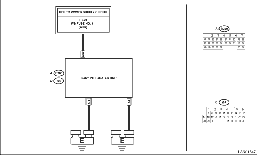 3) Measure the voltage between body integrated unit connector and chassis ground using tester.