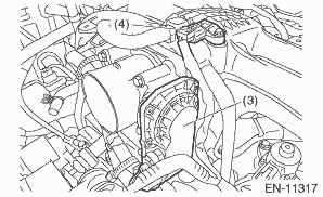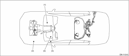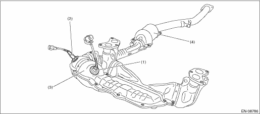 (1) | Front oxygen (A/F) sensor | (3) | Front catalytic converter | (4) | Rear catalytic converter |