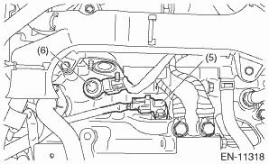 (1) | EGR control valve | (4) | Fuel injector | (6) | Tumble generator valve actuator |