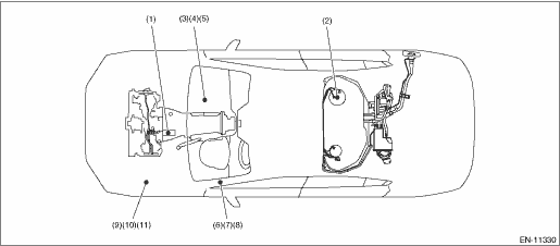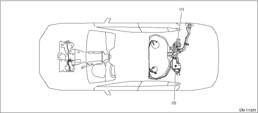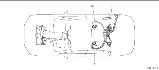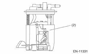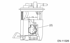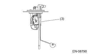 (1) | Leak check valve ASSY (with built-in pressure sensor) | (2) | Fuel level sensor | (3) | Fuel sub level sensor |