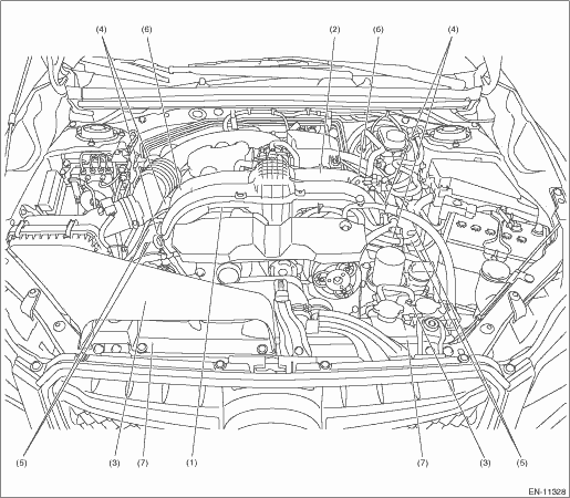 (2) | Purge control solenoid valve | (5) | Ignition coil | (7) | Exhaust oil control solenoid |