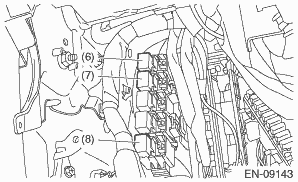 (2) | Fuel pump | (6) | A/F, oxygen sensor relay | (10) | Radiator main fan relay 2 |