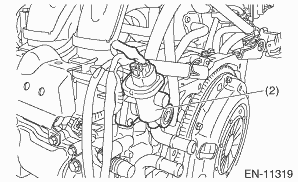 (2) | Tumble generator valve actuators (with built-in opening angle switch) | (6) | Knock sensor | (10) | Exhaust camshaft position sensor |