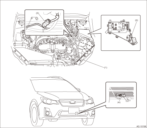 (1) | A/C compressor | (3) | Pressure switch | (4) | Ambient sensor |