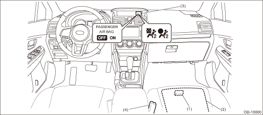 (1) | Occupant detection control module | (3) | Airbag ON/OFF indicator light | (4) | Buckle switch (passenger’s seat) |